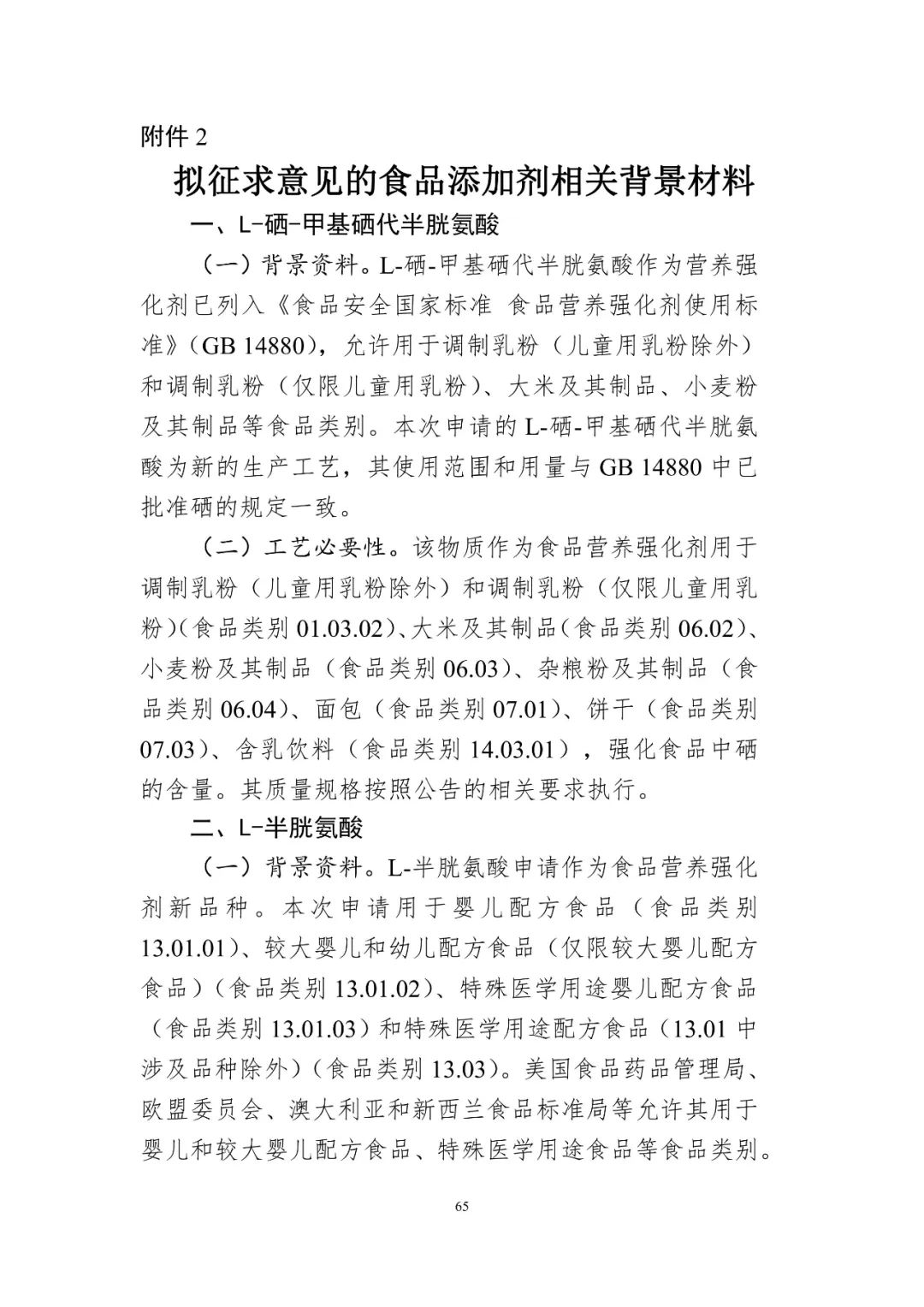 關(guān)于公開征求L-硒-甲基硒代半胱氨酸等13種食品添加劑新品種意見