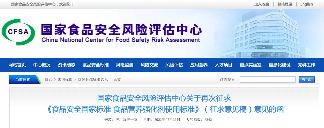 GB14880 食品營養(yǎng)強化劑使用標準修訂再次征求意見!