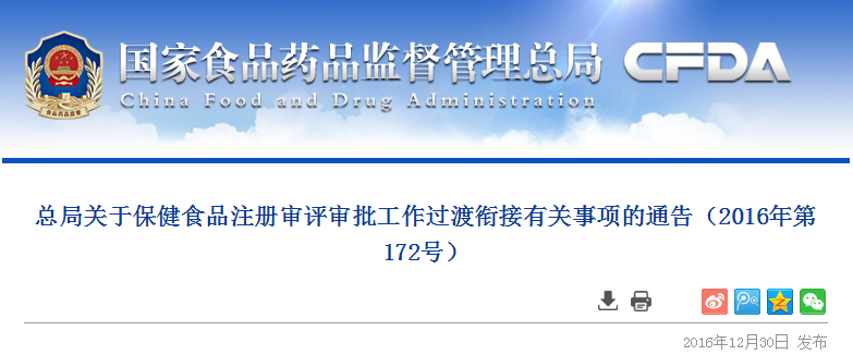 CFDA發(fā)布保健食品注冊(cè)審評(píng)審批過(guò)渡銜接有關(guān)事項(xiàng)