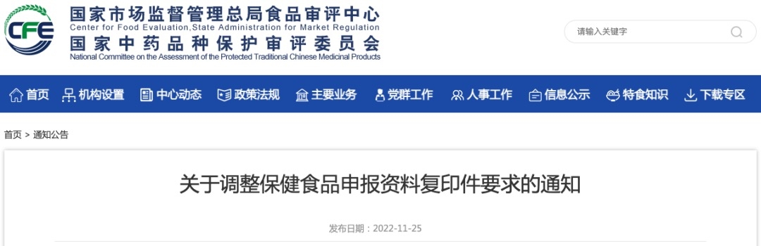 審評(píng)中心 | 關(guān)于調(diào)整保健食品申報(bào)資料復(fù)印件要求的通知