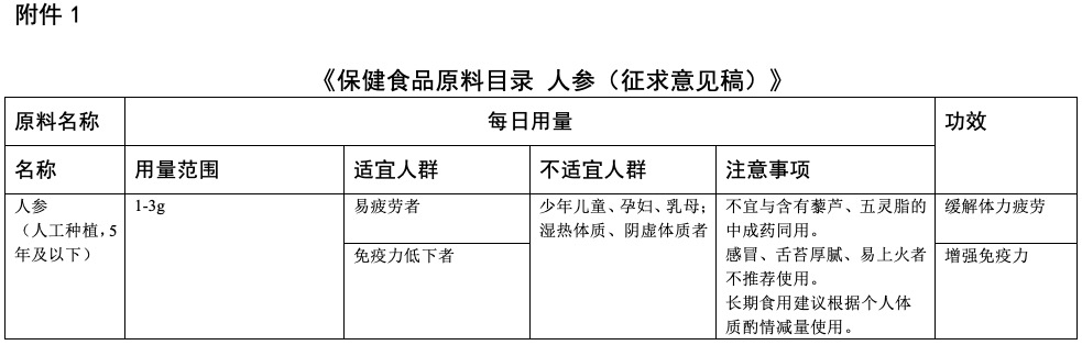 市場監(jiān)管總局征求人參、西洋參、靈芝三種保健食品原料目錄(征求意見稿)意見的公告